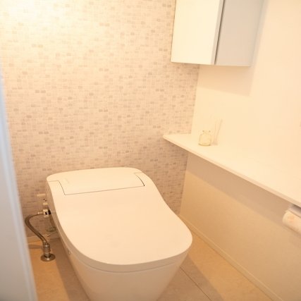 便器の上部に吊戸棚を設けると、トイレットペーパーやサニタリー用品などを隠して収納できます。 - ニッチ